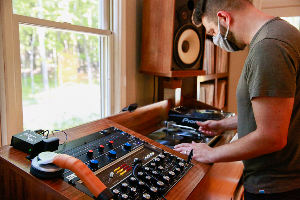With his spaceship-like setup, Ben Alschuler plays songs for his family to dance to in the room together.