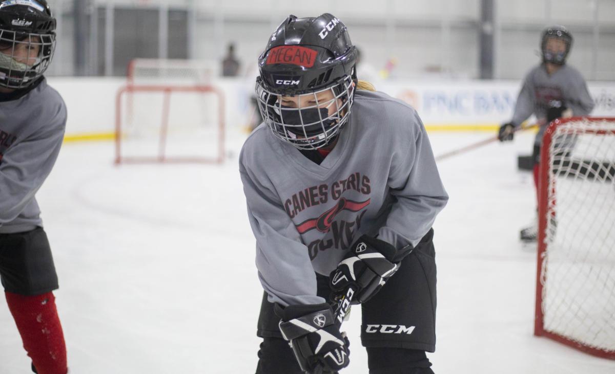 It was week two of the Canes Girls Youth Hockey clinic, and a cacophony of sticks tapping the ice and pucks hitting the siding can be heard as dozens of young girls fall in love with the sport — exactly what retired professionals Gagliardi and Colleen Murphy hoped for when they retired from playing professional hockey in the NWHL to grow the sport in their home state.